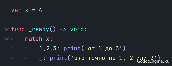 Если в переменной X укажем число которого нет в условии то ничего не произойдет. Но если нам необходимо понимать что данные не соответствуют, то мы можем сделать это через «_».